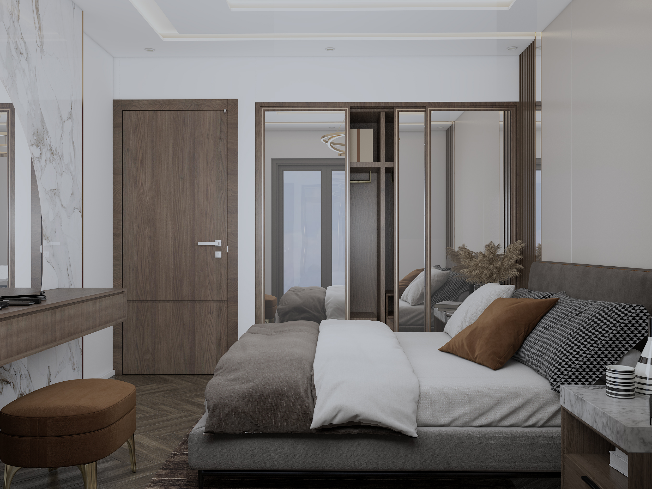 Ce projet de chambre de luxe moderne est une création d’intérieur réalisée par DICEARCHI. Nous avons créé un environnement équilibré en utilisant une riche palette de matériaux naturels.
