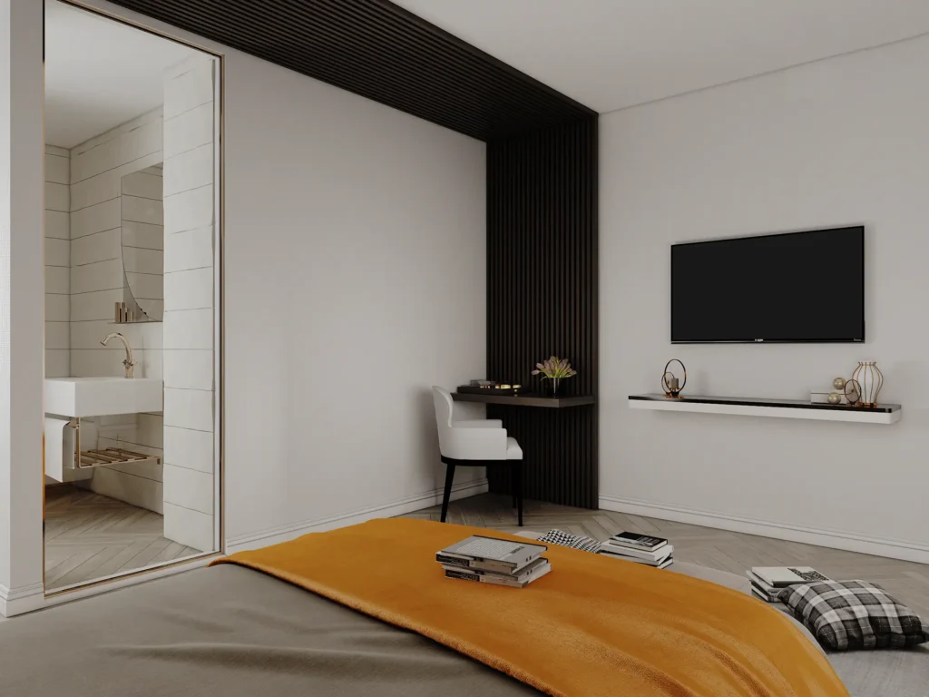 We present this Modern Hotel Room Design, a boutique project by DICE ARCHI. Our team focused on creating a space that feels like a home, blending durability with luxury aesthetics.