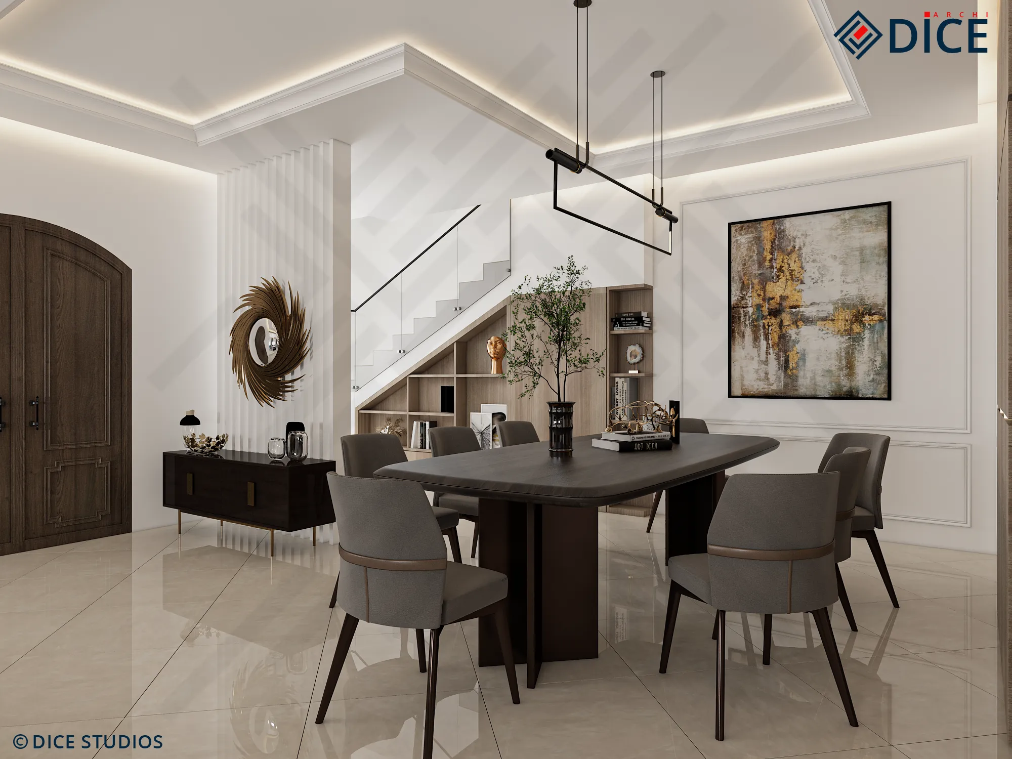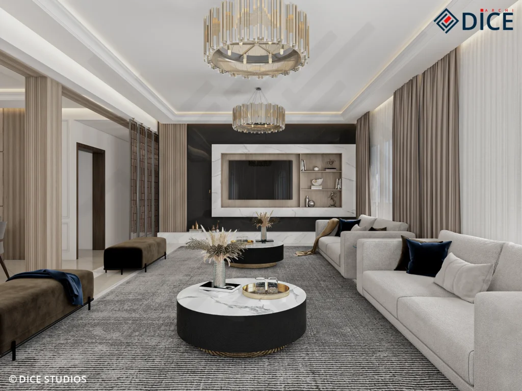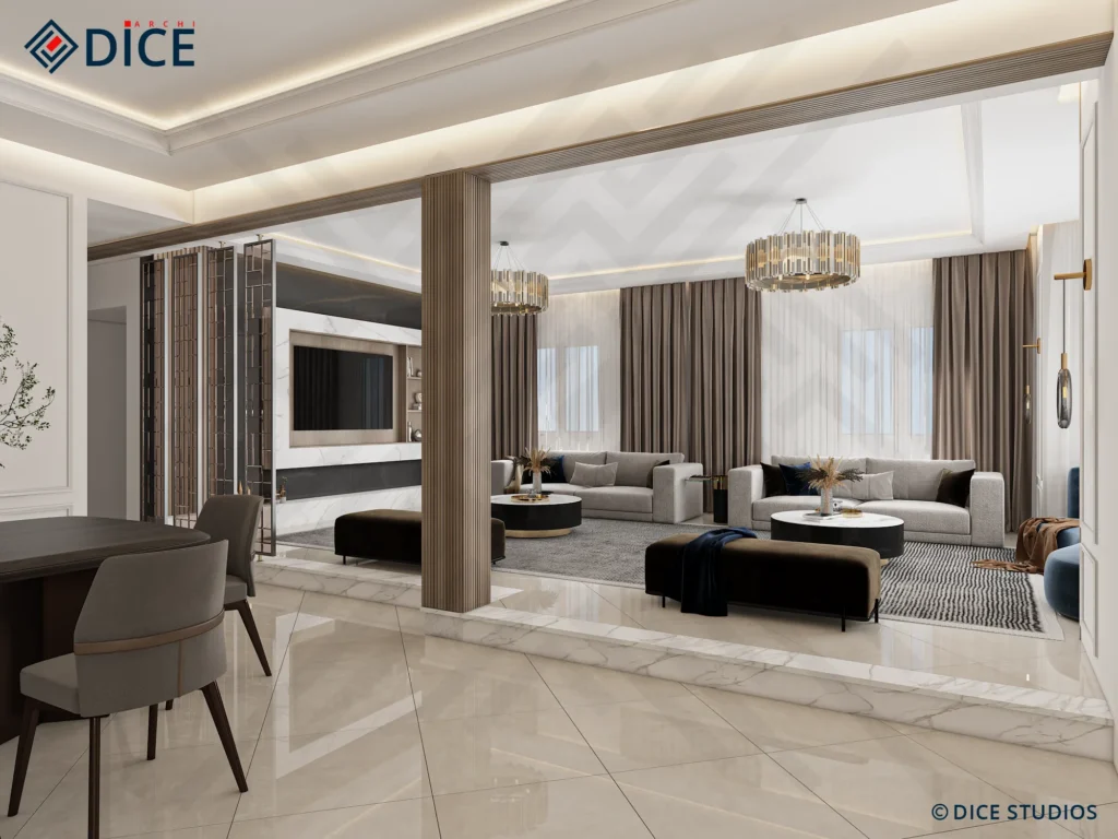 This Modern Luxury Living Room balances high-end aesthetics with genuine livability. DICEARCHI created this open-plan space to prove that sophistication does not require sacrificing comfort.