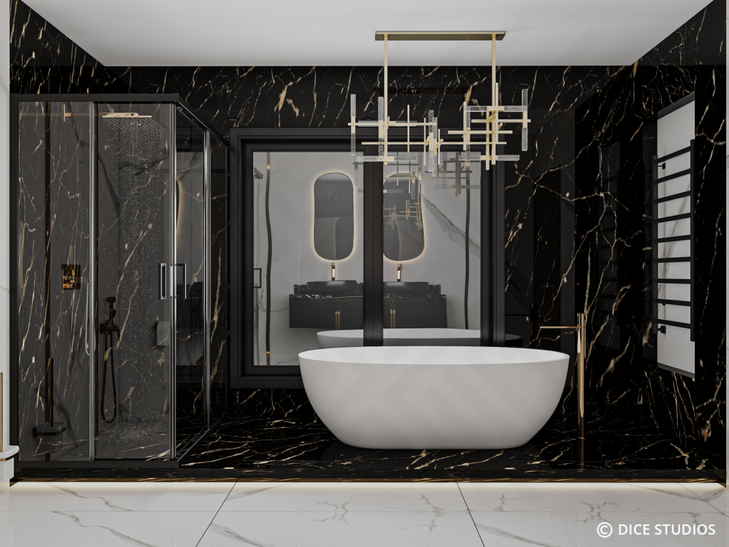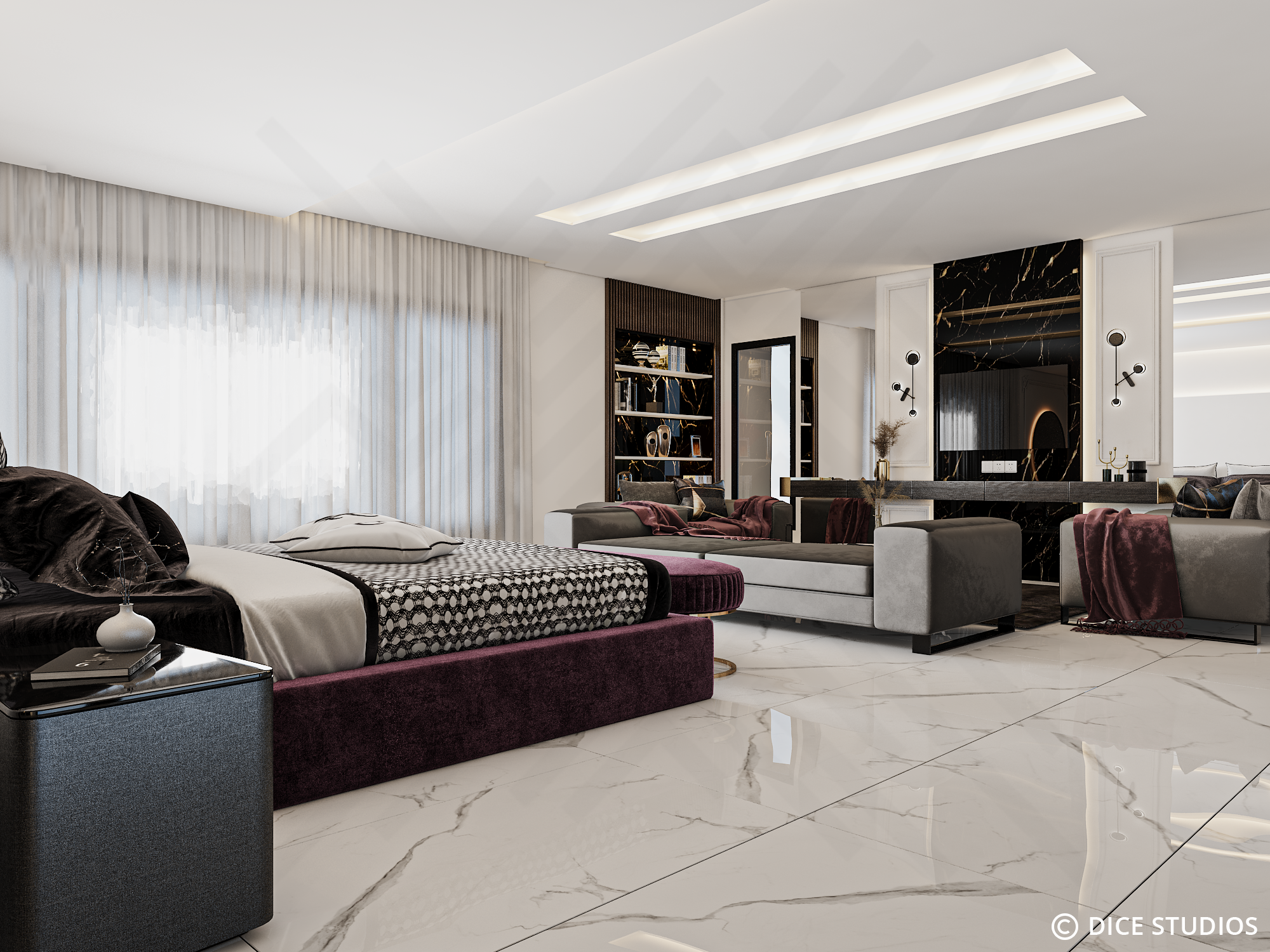 This Modern Luxury Master Suite is a collaborative design masterpiece by Abir Jeloul Studio and DICE ARCHI. Together, we crafted a space that balances bold drama with serene comfort.