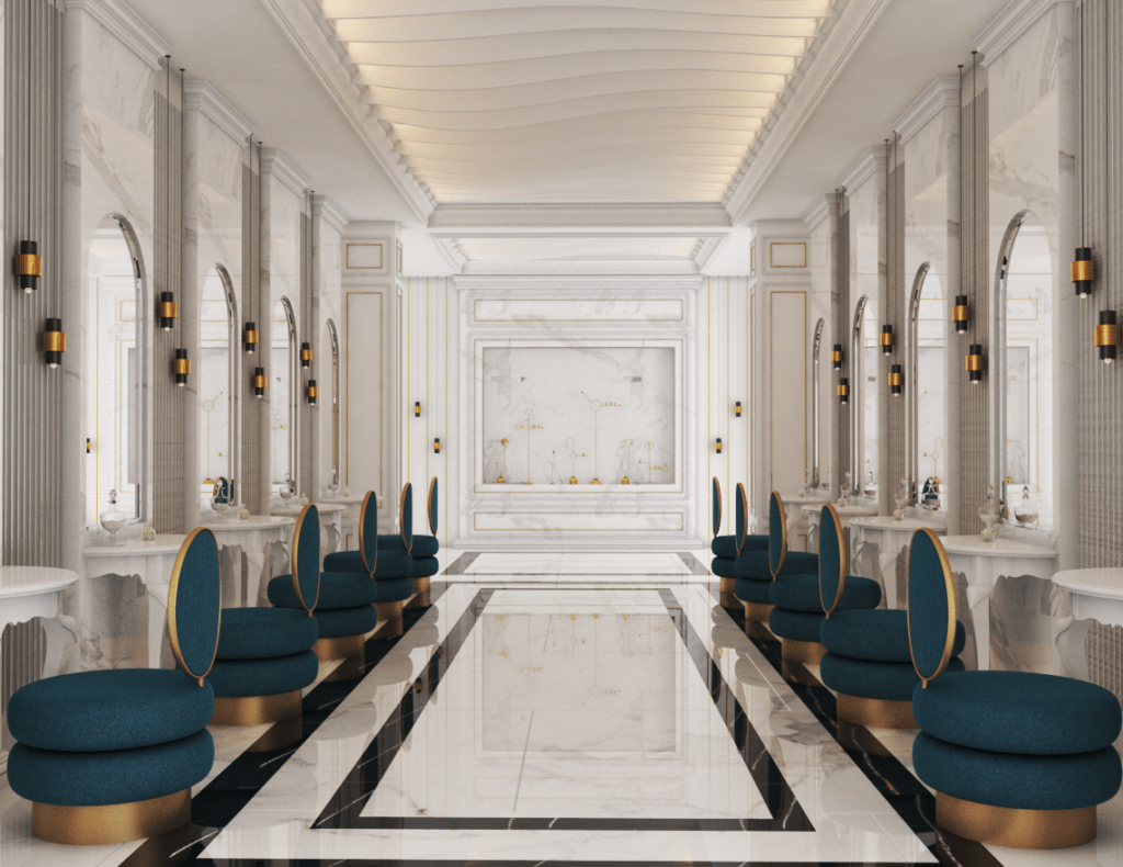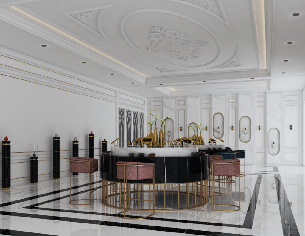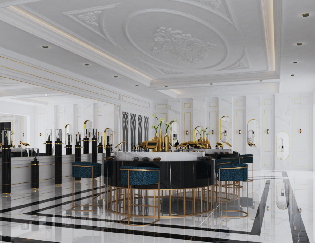 The Temple of Fragrance Ultimately, this space serves as a sanctuary for the senses. The lighting design accentuates the gold details and the texture of the marble, creating an atmosphere of clinical precision mixed with high luxury. Through this collaboration, DICE ARCHI demonstrates how high-end visualization transforms a student’s blueprint into a compelling, photorealistic environment.